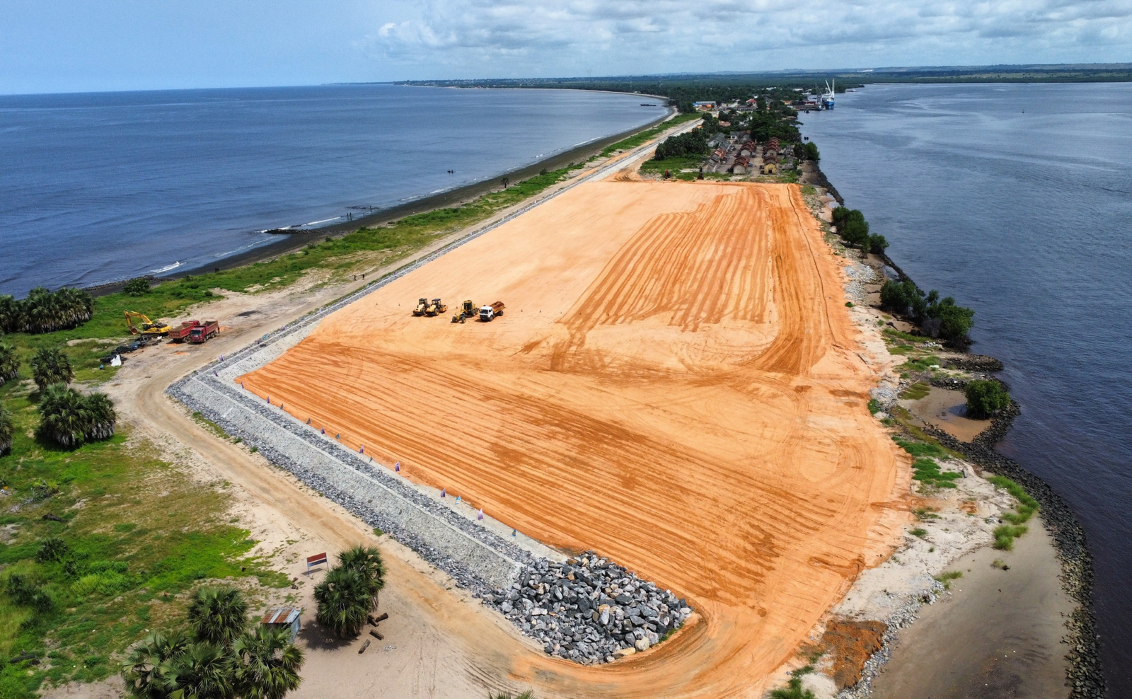 Located on the Atlantic coast in Kongo Central province, the Banana site is being developed into the DRC’s first deep-water container port, offering direct access to international maritime routes at the mouth of the Congo River. Previously a modest local port facility, the site has gained strategic importance due to its potential to serve as a modern logistics hub, reducing reliance on upstream river ports like Matadi and opening direct routes for containerized imports and exports.