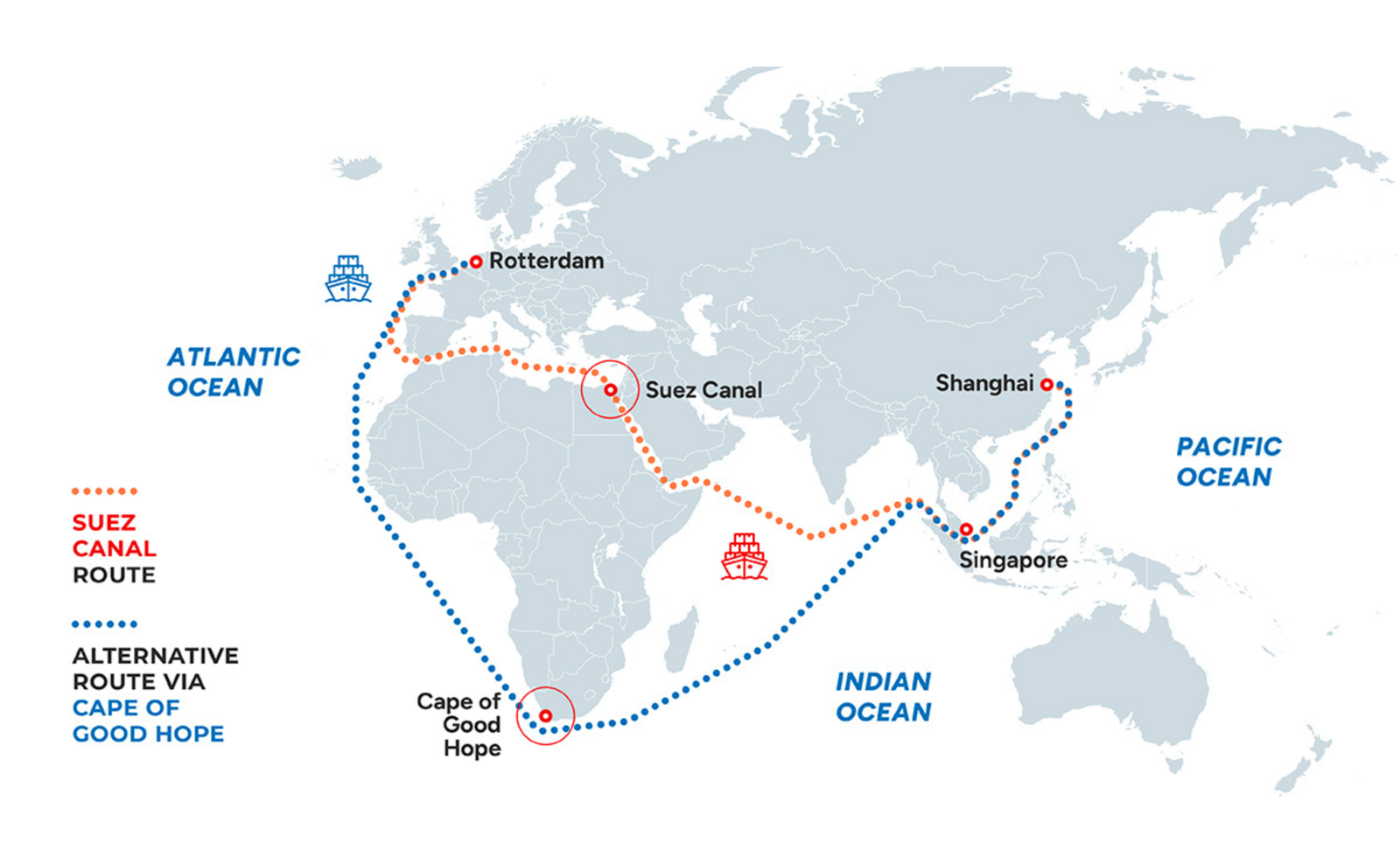 However, the Cape route comes with operational consequences. Sailing around southern Africa can add 10 to 20 days to Asia–Europe shipping journeys and increase fuel consumption significantly, sometimes requiring up to 40% more fuel compared with the Suez Canal route. These longer voyages reduce effective shipping capacity and contribute to higher freight rates and insurance costs. Economists estimate that such rerouting can reduce global container shipping capacity by about 9% due to longer transit times.